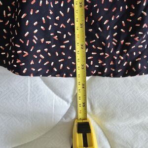 The dress features an abstract pattern in a tasteful navy blue and coral pink flecks, ideal for making a statement at any party or cocktail event.