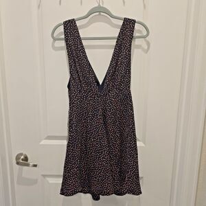 New w Tag Forever 21 Deep V Dress Small Navy Blue Coral Pink Sleeveless Zip Sexy