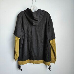 New w Tags Gurunvani Yellow Black Layered Contrast Hoodie Sweatshirt Large