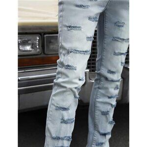New w Tags Men's Ripped Bootcut Jeans Slim Fit Bell Bottom Ripped Flared Denim