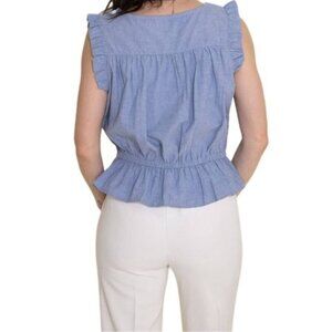 New w Tags Simply Southern Ruffle Peplum Top Blue Chambray Women Size Large NWT