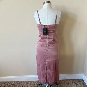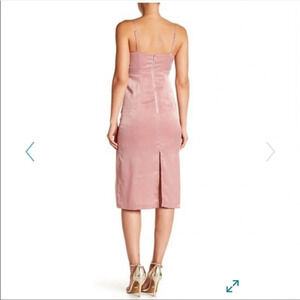 Gorgeous pink satin fitted sheath slip dress with open keyhole at the chest and slit in back. New with tags never worn but does have a flaw at the side seam