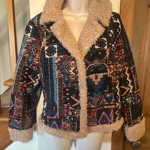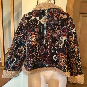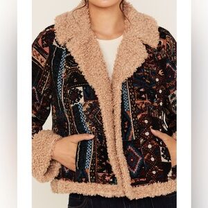 New w/ tags Shyanne Tapestry Sherpa lined cropped button up jacket . Size L