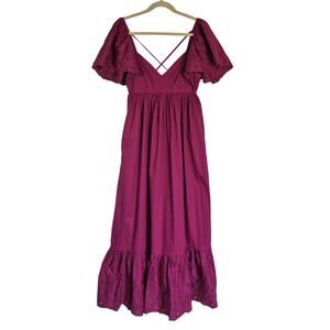 New w/Tag Anthropologie En Saison Flutter-Puff Sleeve Eyelet Maxi Dress Small