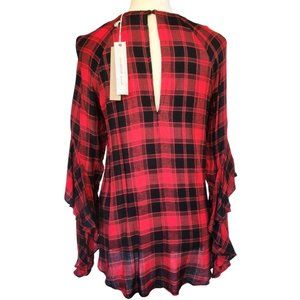 New w/Tags Mustard Seed Brand Red & Black Plaid Keyhole Back Blouse Sz Small