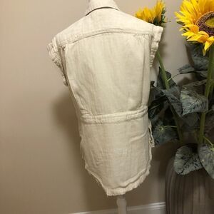 New We The Free Vest Size XS Short Sleeve Cotton Blend Zip Up Waist 18 Long from arm pit 17.