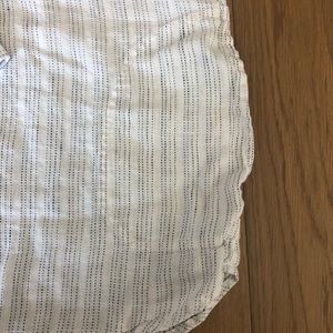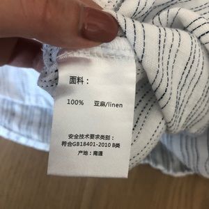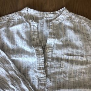 New white black vertical striped long sleeve blouse linen size medium cotton