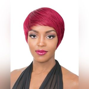 It’s a new in box wig 100% Human Hair Wig HH BELLE AMI 99J-burgundy/ Red Color, Short Cut. Beautiful red, wine color.