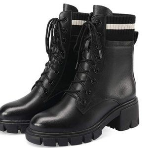Winter new style women's thick heeled thick soled boots with woolen threads. Sole material: rubber. Insole material: artificial short plush. Boot shaft material: first layer cowhide.