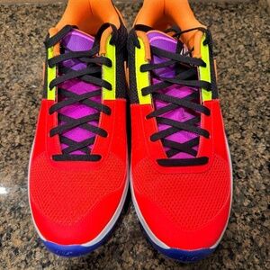 The product is a brand new pair of Nike Ja 1 ASW Black Multicolor Racer Blue sneakers in men's size 14. These sneakers feature a lace-up closure, rubber outsole, and cushioned insole for comfort and performance. The design includes a colorful check pattern with the signature of basketball player Ja Morant, making it perfect for various occasions such as activewear, casual outings, or workwear. These athletic shoes are part of the Nike Air product line and are suitable for activities like gym training, walking, and basketball. The stylish and trendy design makes them a versatile choice for all seasons.