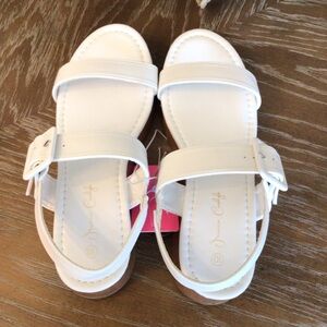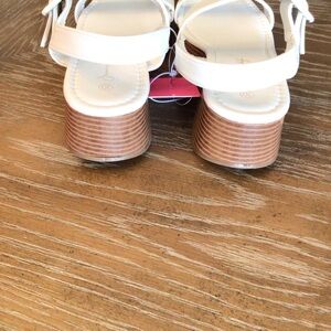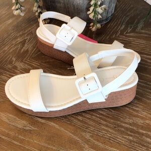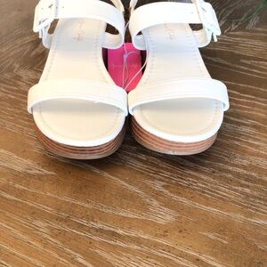 Jessica Carlyle Womens White Open Toe Slingback Wedge Sandal Size 10. New with defect in box. Inside platform on both shoes have an overlap in print design and outer print on right shoe is flawed. Not that noticeable while wearing. See last two photos. From smoke free home.