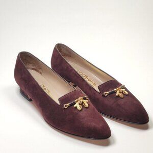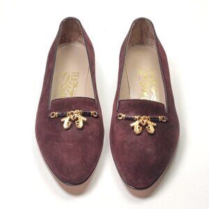 New with Defects Vintage Salvatore Ferragamo Suede Charm Loafers Made in Italy