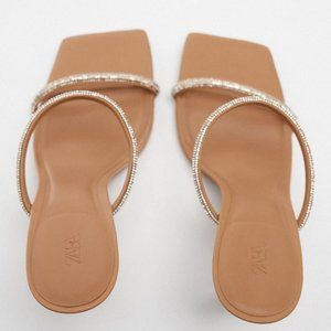 New with Minor Flaw – ZARA Rhinestone Strap High Heel Sandals | Fits US 7 / 7.5