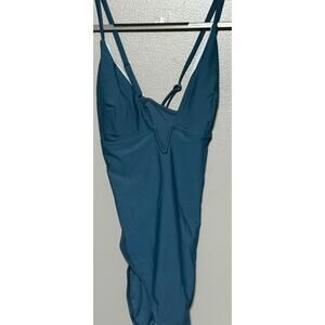 New with Tag Cupshe Teal Blue Deep V Neck size Large Swimsuit