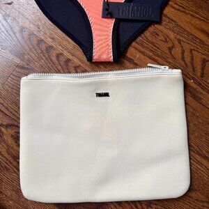 Triangl Women's Orange Neoprene Bikini Bottom Size Small with white cotton detailed edge. Unstretched waistband measures 28.5 inches. Brand new with attached tag. Pouch is also included.