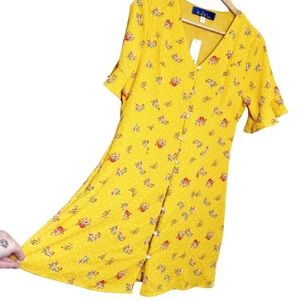 New with Tag Women's Francesca's Blue Rain Yellow Polka Dot Floral Mini Dress