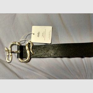 Adika 38"-long (size large) black belt with a belt buckle featuring a silver snake. New with tags.