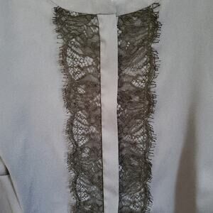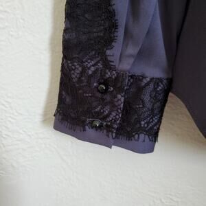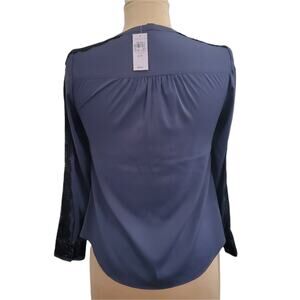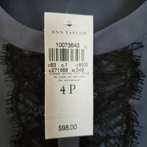 New with Tags Ann Taylor Button Up Shirt Blue with Black Lace Detail 4 Petite