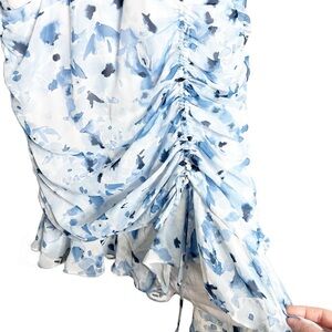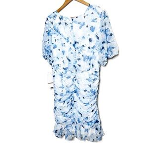 New with Tags Be By Chetta B Women's Ivory Navy Fitted Mini Ruched Ruffle Dress