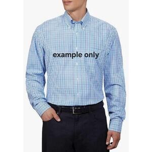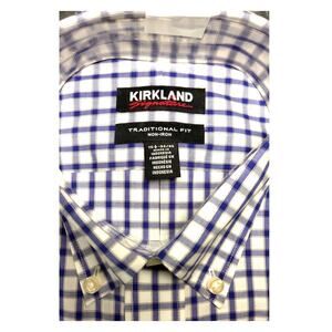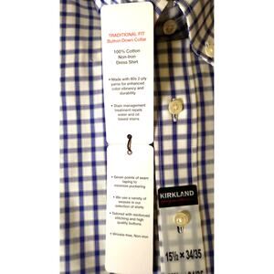 New with Tags perfect condition. Long sleeves, button cuff, button down collar no-iron traditional fit Men's shirt in white with indigo (purple-blue) windowpane pattern