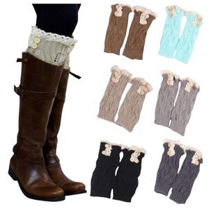 New with Tags Chunky Knit Boot Cuffs with Lace Trim and Buttons