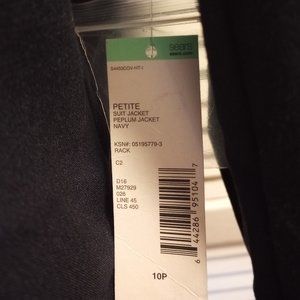 Covington petite peplum lined suit jacket, size 10P. New with tags. The tag says it's navy, but it looks more like black to me.