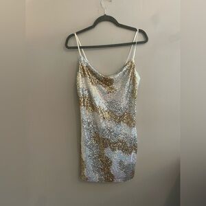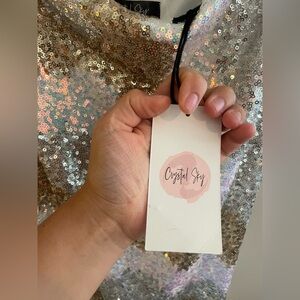 New with Tags Crystal Sky Sequins Silver and Gold Slip Dress