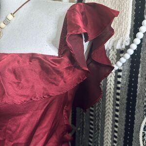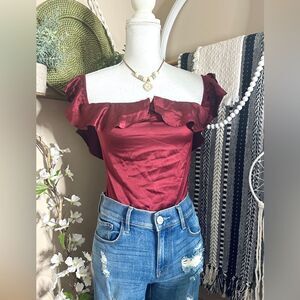 New with Tags For Love and Lemons Red/Burgundy Silk Blend Ruffle Virgo Bodysuit