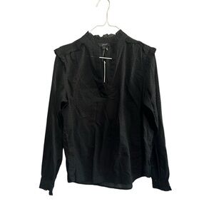 New with Tags J Crew Ruffle-trim V-neck popover in clip dot in Black