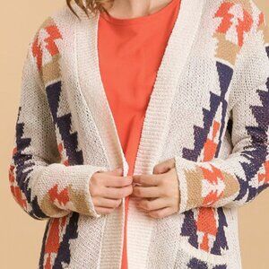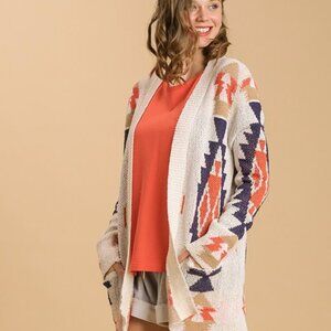 New with Tags Multicolor Pattern Open Front Cardigan with Side Pockets