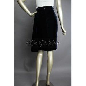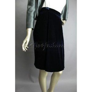 New with Tags PRADA Deep Blue Soft Velvet Pleat Pencil Skirt 6