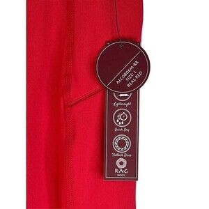 New with Tags RAG Missy Red Women's Jogger Yoga Pant Stretch Size Large Polyester Spandex Blend Moisture Wicking Lightweight Quick Dry Reflector Back of Legs Zip Side Pockets Waist 26" Rise 9" Inseam 19"