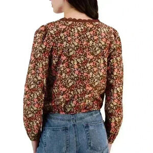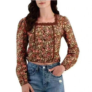 Self❤️Esteem floral lace trimmed square neck top is cropped for a modern look. This top features contrast lace that outlines the square neck and defines the side seams.