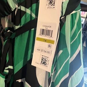 New with flaws Calvin Klein coastal green white floral boho maxi dress Sz 14