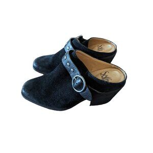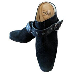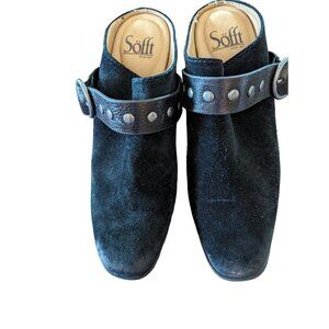 Antique-finished hardware adds a western appeal to this clog-style mule set atop a block heel for a comfortable lift. These Sofft Corey clogs are crafted from smooth suede with extra foam padding throughout for increased comfort. In business since 1927, Sofft luxury shoes get consistently high ratings in premium materials, quality craftsmanship, comfort and aesthetics