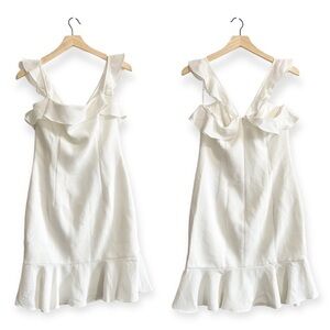 BLACK HALO Faith White Sugar Ruffle Mini Dress