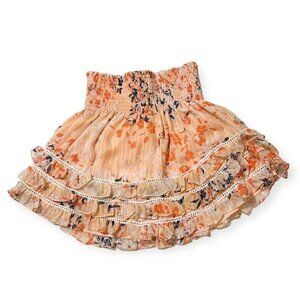 New with tag Ramy Brook Dixie Smocked Ruffle Silk Mini Skirt, Floral, Size S