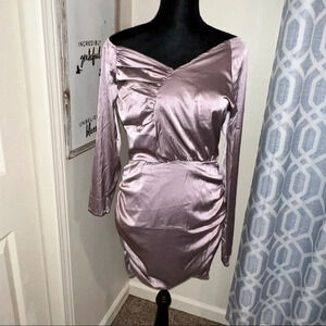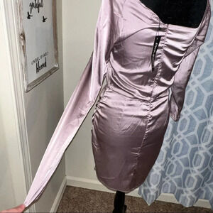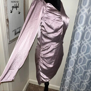 New with tag Satin One Shoulder Ruched mini bodycon Dress