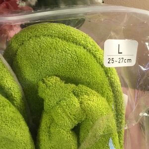 New Uchino Brand soft terry cloth padded Japanese slippers in lime green. Large Size - 11 1/2” length or 27 cm. Great padding. Extra from a trip to Japan still sealed in bag.
