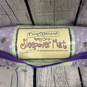 Sleepover mat includes attached blanket and built in pillow. Measures 21" x 47"
