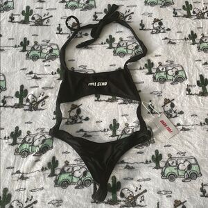 New with tags Full send black thong bikini swimsuit bathing suit one piece XS