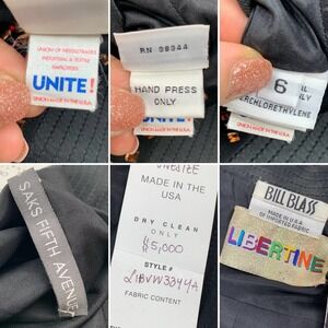 Brand new with tags LIBERTINE BILL BLASS Saks Fifth Avenue one of a kind couture beaded dress. Just WOW!! The perfect show stopping party dress! This gem literally glitz and glams. This is an upcycled vintage Bill Blass for Saks Fifth Avenue dress that has been embellished by LIBERTINE in Los Angeles, a couture fashion house that upcycles designer vintage. Brand new with tags, originally retailed for $5,000. The dress is union made in the USA. Marked size 6. Black wool with a silk collar. Comes with an attached silk slip underneath. SAKS FIFTH AVENUE logo sewn on the inside as well as the BILL BLASS / LIBERTINE logo. Hidden half zipper on the left side. Measures 13.5" across shoulder, 17" across underarms, 17" across hips, 19" across bottom, 41.5" down the back. Fabric has light stretch to it.