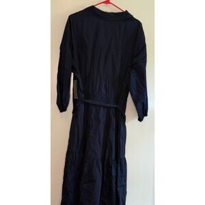 Shirt dress. Button-front design with a relaxed fit body that can be cinched at the waist with the removable belt.