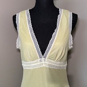 New with tags Le Lis size large chartreuse maxi length slip dress with lace trim