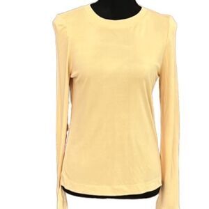 New with tags Les Copains yellow crew neck long sleeved top 100% rayon, size 44