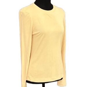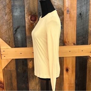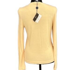 New with tags Les Copains yellow crew neck long sleeved top 100% rayon, size 44. Buttery soft, beautiful yellow color. Size equals US size 8. Approximate measurements are pit to pit 17.5”, length from shoulder approximately 23”.