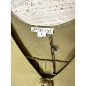 New with tags Loveriche Tie Neck Short Sleeve Shift Dress Olive Green Medium