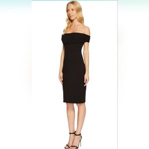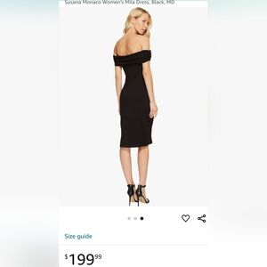 new with tags little black dress by Susana Monaco. knee length, body con, off shoulder. sz medium. pit to pit 33", 28" waist, 86% nylon, 14% lycra