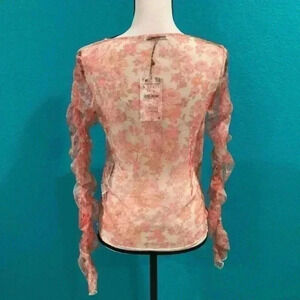 New with tags Zara orange tangerine rose floral print long ruched sleeve sheer mesh top in size small. This is a beautiful floral orange sheer long sleeve shirt.