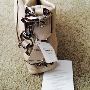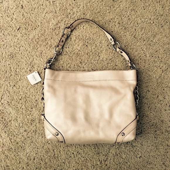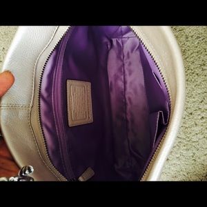 Coach leather purse NWT in very versatile neutral/ pearl color with silver hardware and purple lining. Authentic!!